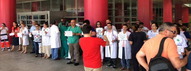 Tras el grave incidente ocurrido en la tarde de ayer, cuando cuatro profesionales de la sanidad ceutí fueron retenidos y atacados, presuntamente, por el padre de un paciente tras una intervención en su domicilio, durante la mañana de hoy, a las 12,00 horas, se ha llevado a efecto al convocatoria de un paro de 10 minutos en los centros de salud de Ceuta, así como una concentración a las puertas del Hospital de la ciudad autónoma.