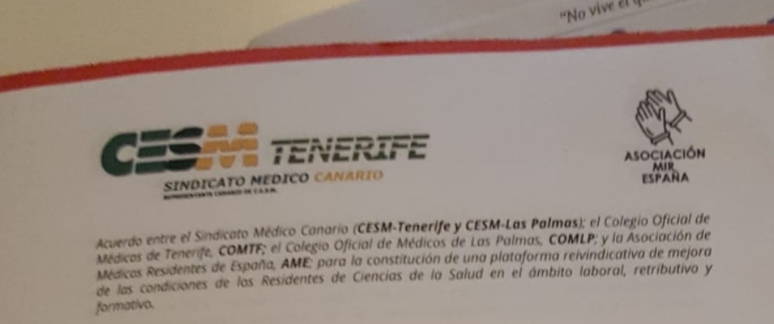La decisión fue aprobada por unanimidad en el Comité Ejecutivo del Sindicato Médico Canario el pasado 1 de septiembre y forma parte también de un acuerdo con el Colegio Oficial de Médicos de Tenerife y el de Las Palmas y la Asociación de Médicos Residentes de España (AME) para constituir la plataforma reivindicativa de mejora de las condiciones de los residentes de Ciencias de la Salud en el ámbito laboral, retributivo y formativo.