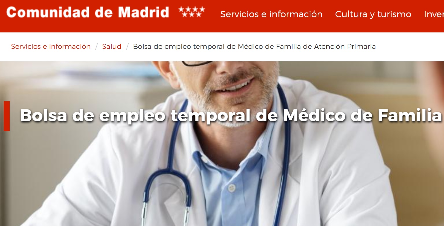 La Dirección General de Recursos Humanos y Relaciones Laborales de la Comunidad de Madrid publicaba el pasado 24 de septiembre las relaciones definitivas de los admitidos y excluidos de la bolsa única para la contratación de personal temporal en las categorías profesionales de pediatra de Atención Primaria y de Médico de Familia de Atención Primaria.