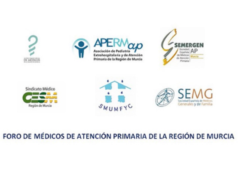 El Foro de Médicos de Atención Primaria de la Región de Murcia está integrado por las Vocalías de Atención Primaria del Colegio de Médicos, la Secretaría Técnica de Atención Primaria del Sindicato Médico CESM y las Sociedades Científicas de Atención Primaria SEMG, Sociedad de Médicos Generales y de Familia de la Región de Murcia, SEMERGEN, Sociedad de Médicos de Atención Primaria de la Región de Murcia, SMUMFYC, Sociedad Murciana de Medicina Familiar y Comunitaria y APERMAP, Asociación de Pediatría de Atención Primaria y Extrahospitalaria de la Región de Murcia.