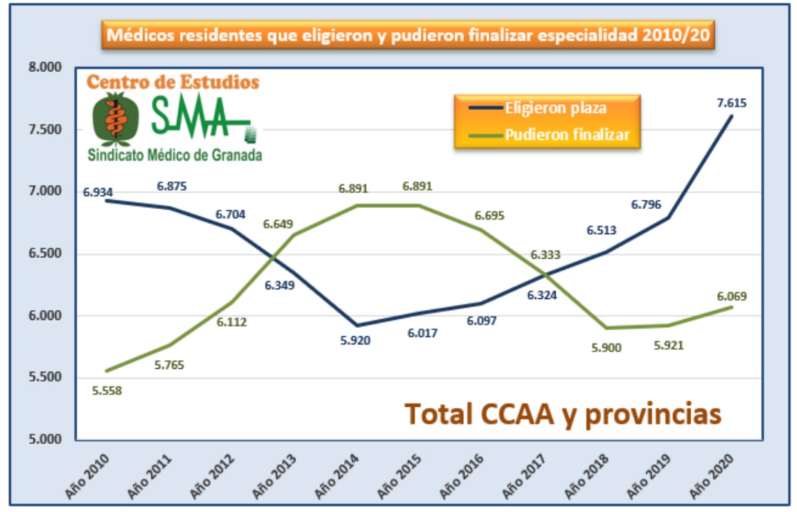 En los siguientes años (2021, 2022 y 2023) se incrementará levemente, consecuencia de los pequeños incrementos de plazas adjudicadas en los años 2017 a 2019. Finalmente, aunque muy tarde, en la convocatoria que tomaron posesión de las plazas este año se incrementaron un 12% (819) hasta llegar a 7.615, pero estos nuevos especialistas no terminarán hasta los años 2024 y 2025.