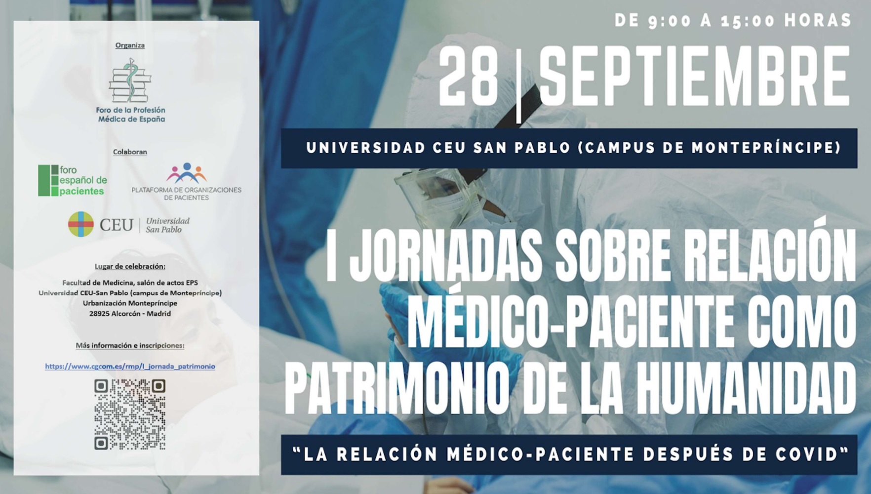 Asimismo, cuenta con el apoyo de la Universidad San Pablo – CEU, en cuyo campus de Montepríncipe se desarrollará la Jornada, y que se encargará de la retransmisión on-line de la misma.
