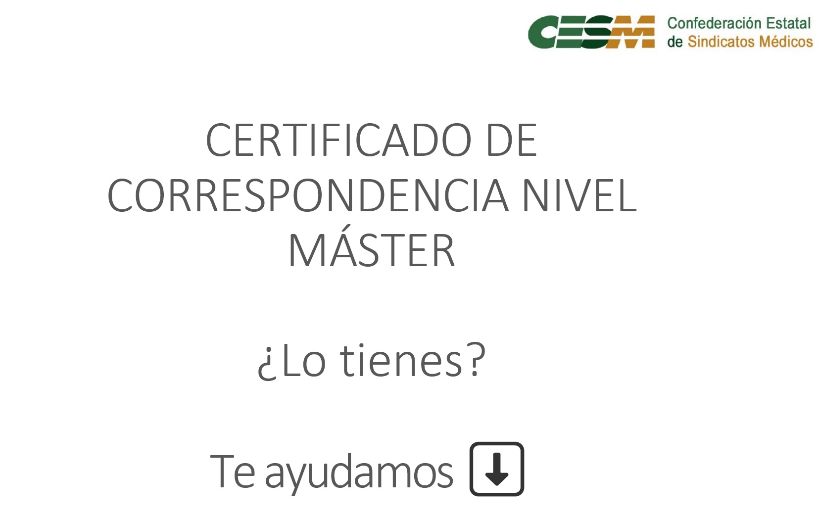 La Confederación Estatal de Sindicatos Médicos (CESM) ha elaborado un documento con el que pretende ayudar a todos los licenciados y graduados en Medicina a acreditar su titulación con el nivel Máster, que corresponde al Grado 3 MECES.