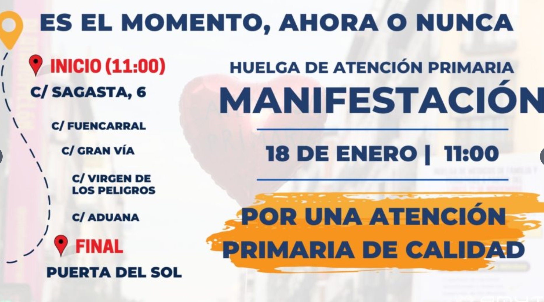 Mientras, los médicos de Familia y pediatras volverán a manifestarse por las calles de Madrid este miércoles 18 de enero de 2023 a partir de las 11:00 para alertar de que el fin de la Atención Primaria está cerca si no se toman decisiones reales para evitarlo. La manifestación se iniciará en la DG de RRHH en Sagasta, pasará por la Consejería de Sanidad en la calle Aduana y finalizará delante de la sede del Gobierno de la Comunidad de Madrid en Sol.
