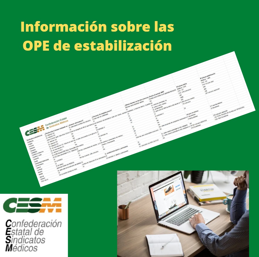 Desde CESM se ha recopilado toda la información disponible hasta el momento sobre los diferentes procesos de estabilización a través de las Ofertas Públicas de Empleo disponibles en las distintas comunidades autónomas.