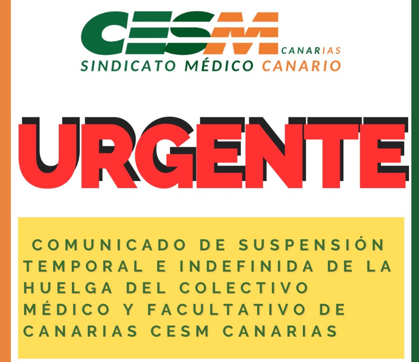 Es por lo anterior que CESM Canarias decidió continuar esta huelga, manteniendo todas las vías de comunicación abiertas hasta el último momento para conseguir un acuerdo satisfactorio que mejore las condiciones de los médicos canarios y de la sanidad canaria en general.