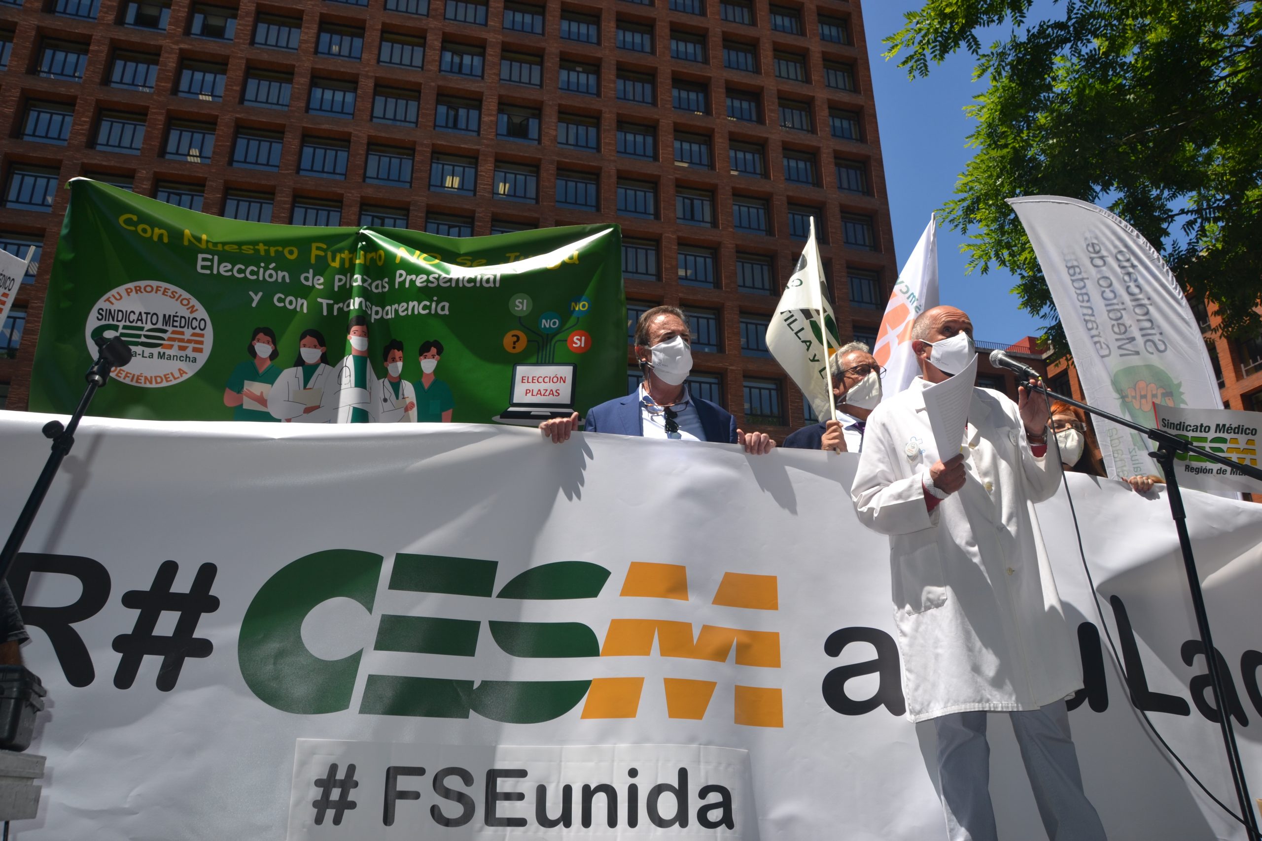 La Confederación Estatal de Sindicatos Médicos (CESM) ha presentado este viernes ante la Delegación de Gobierno de la Comunidad de Madrid el preceptivo aviso de convocatoria de la manifestación que tendrá lugar el próximo 8 de junio y la posterior convocatoria de concentración de duración ilimitada frente al Ministerio de Sanidad con el objetivo de protestar por la situación de los afectados por el proceso de elección de plazas MIR impuesto por la Dirección General de Ordenación Profesional.
