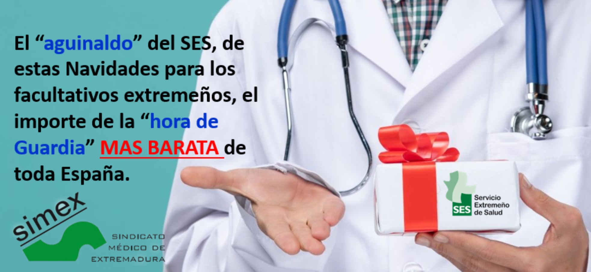 El Sindicato Médico de Extremadura (Simex) ha emitido un comunicado en el que recuerda a los responsables del Servicio Extremeño de Salud (SES) que está en su mano evitar el conflicto planteado en forma de huelga médica para el próximo mes de enero, y que si esta llega a materializarse será únicamente responsabilidad de la Administración.