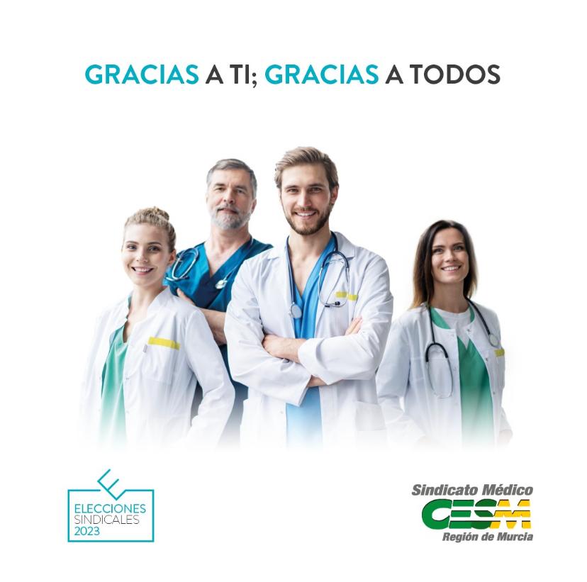 El Sindicato Médico de la Región de Murcia repite resultados tras las elecciones sindicales en el Servicio Murciano de Salud celebradas a lo largo de la jornada de ayer. CESM Región de Murcia ha conseguido 725 votos más, lo que se traduce en un total de 3156 votos y 58 delegados: 39 en Juntas de Personal y 19 en Comité de Empresa.