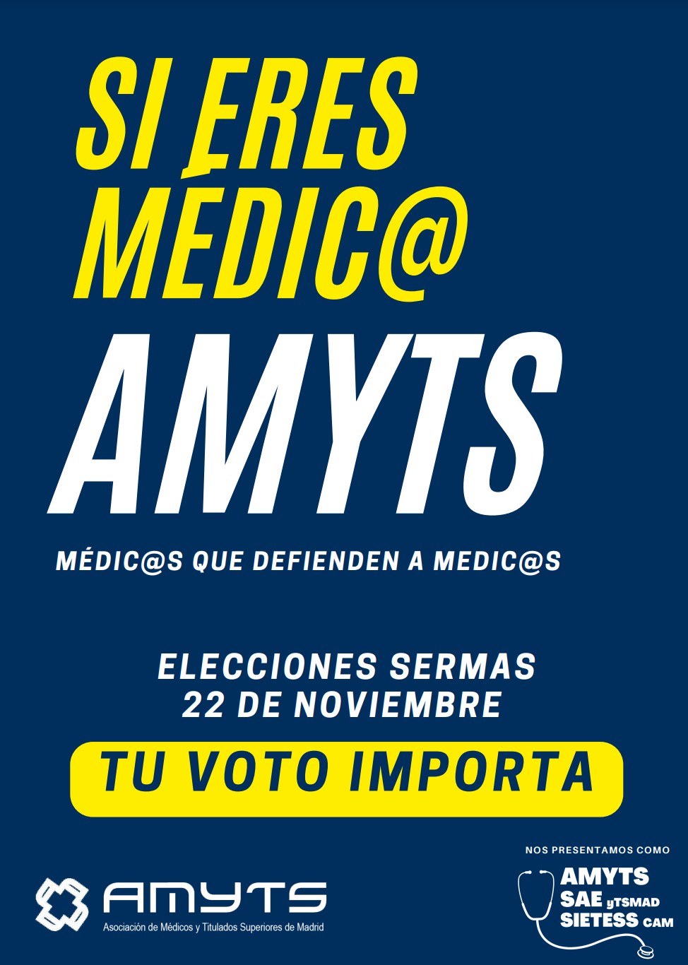 En AMYTS llevamos muchos años trabajando por los médicos y titulados superiores, por eso esta campaña electoral que ha arrancado el 8 de noviembre de 2023 va a ser sencilla para nosotros. Simplemente tenemos que difundir el trabajo hecho, el análisis claro de la situación actual de nuestra sanidad y que nuestras soluciones para nuestros compañeros lleguen a todos los rincones del SERMAS.