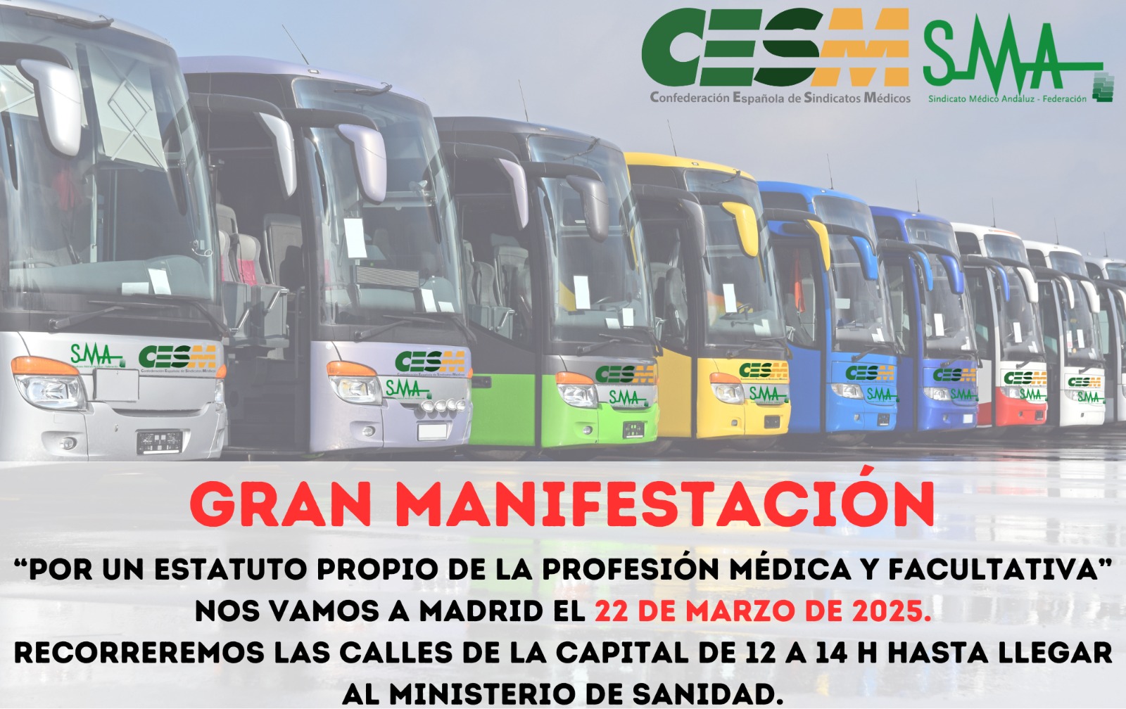 La Confederación Española de Sindicatos Médicos (CESM) junto al Sindicato Médico Andaluz (SMA) han acordado la celebración de una gran manifestación en Madrid para que sindicatos, organizaciones representativas y profesionales puedan evidenciar el rechazo unánime que ha generado el borrador de Estatuto Marco difundido por el Ministerio de Sanidad.