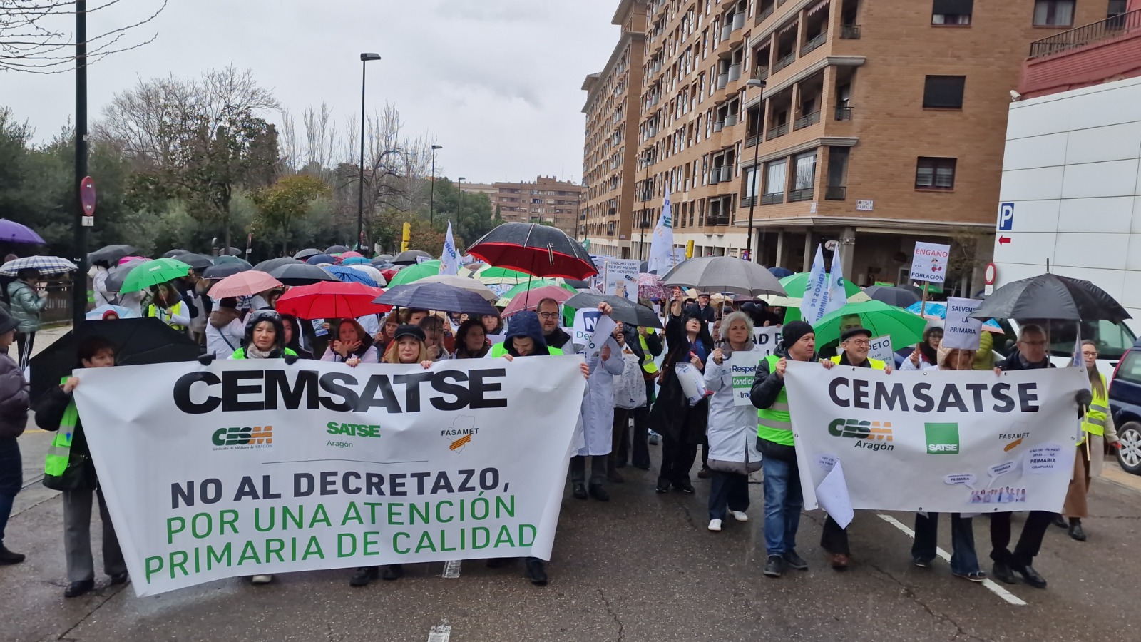 Los sindicatos sanitarios subrayan que la manifestación del domingo reunió en Zaragoza a más de tres mil participantes, pese a la lluvia, y contó con una amplia presencia de ciudadanos, asociaciones y grupos políticos, por lo que es una evidencia que el rechazo al “decretazo”, no es solo del sindicato mayoritario en la Mesa de Sanidad, sino de todos los profesionales y de todo Aragón.